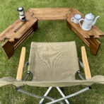 焚火テーブルに使用している材料のメルクシンパイン材は高級家具などにも使用される材料ですので、オイルとワックスで仕上げた木目は重厚感があり落着いた仕上がりとなっておりますので、インテリア家具としてもお使い頂ける仕様となっております。
