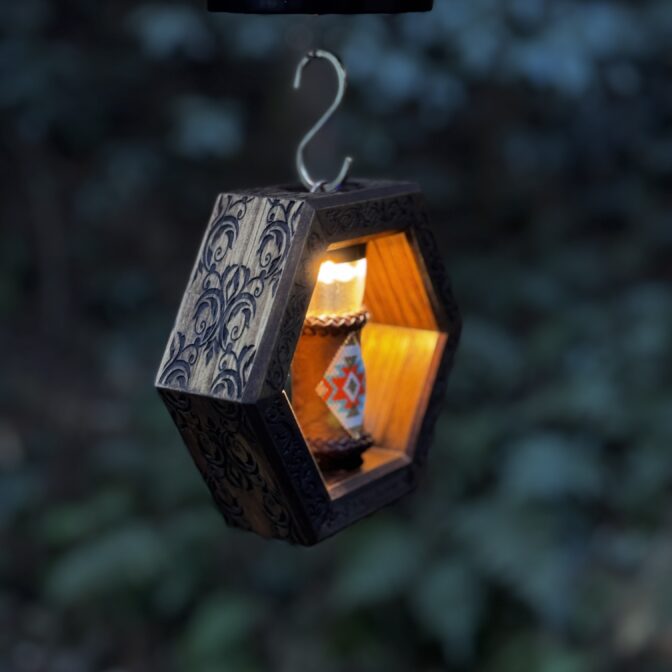 こちらのヘキサ型の一輪挿しはゴールゼロ(LEDランタン)を吊り下げられる仕様になっております。